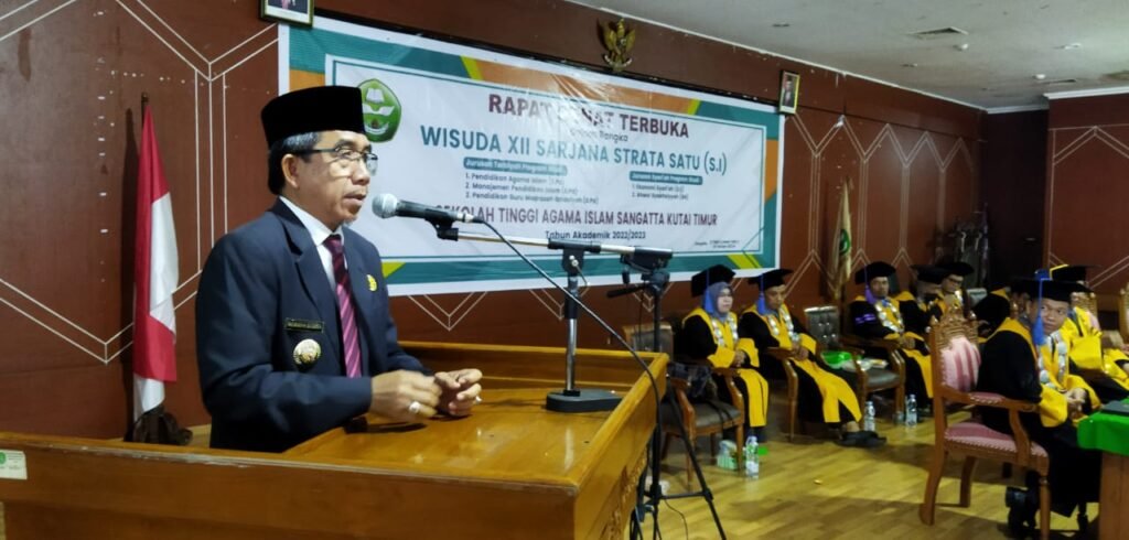 STAI SANGATTA – Sebanyak 169 mahasiswa Sekolah Tinggi Agama Islam Sangatta (STAIS) Kutai Timur (Kutim) diwisuda oleh Ketua STAI Sangatta Arif Rembang Supu, di Ruang Akasia Gedung Serba Guna (GSG) Bukit Pelangi, Senin (3/10/2022) pagi. Momen Wisuda XII Sarjana Strata Satu (S-1) yang sakral bagi para sarjana ini pun turut disaksikan Bupati Kutim Ardiansyah Sulaiman.