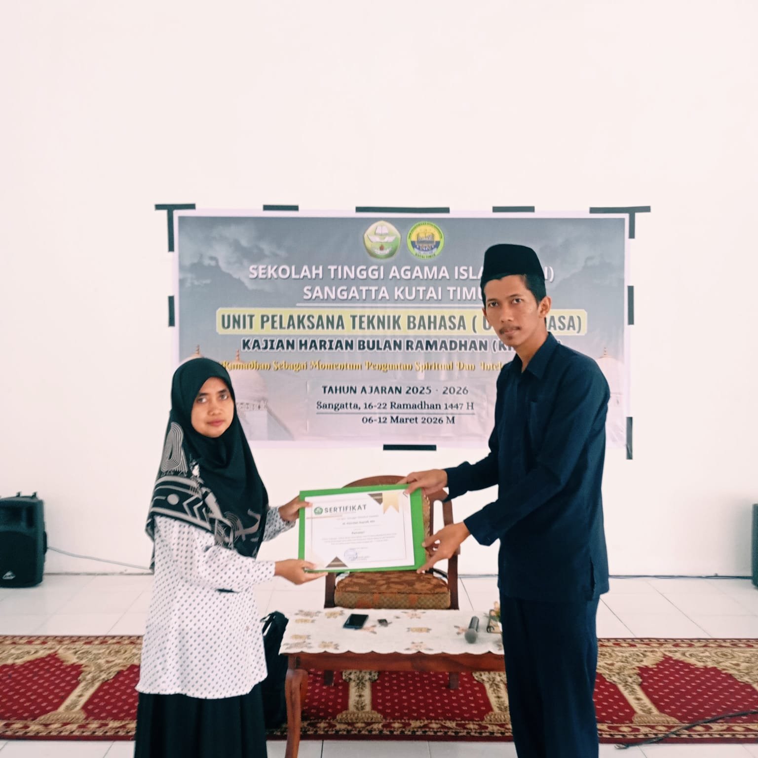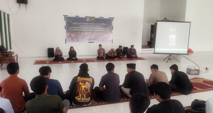 Sangatta – Sekolah Tinggi Agama Islam (STAI) Sangatta menyelenggarakan kegiatan Kajian Harian Bulan Ramadhan (KHABAR) Mahasiswa/i STAI Sangatta dengan mengusung tema “Ramadhan Sebagai Momentum Penguatan Spiritual dan Intelektual Mahasiswa.” Kegiatan ini merupakan agenda pembinaan keagamaan mahasiswa selama bulan suci Ramadhan yang diselenggarakan oleh lembaga STAI Sangatta dan difasilitasi oleh UPT Bahasa STAI Sangatta.