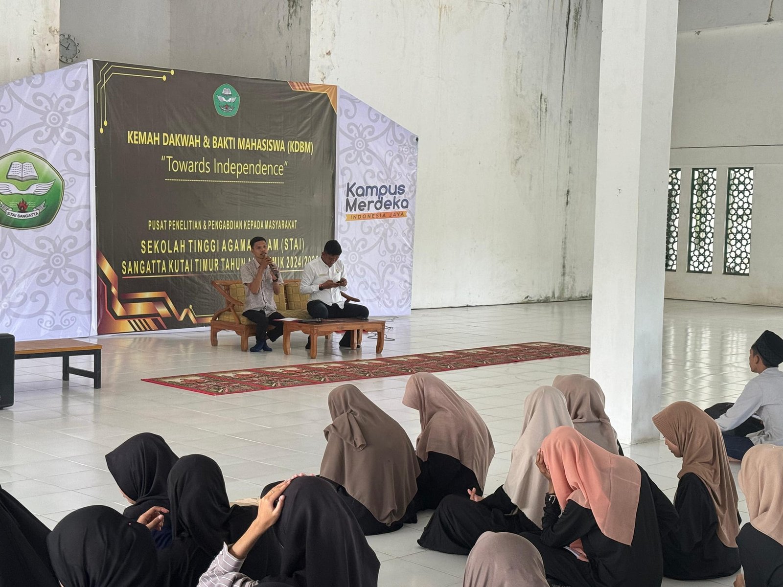 Sangatta, 28 Agustus 2024 — STAI Sangatta sukses melaksanakan Kemah Dakwah Bakti Mahasiswa (KDBM) dengan mengusung tema “Towards Independence”. Kegiatan dipusatkan di Masjid STAI Sangatta dan lingkungan kampus.
