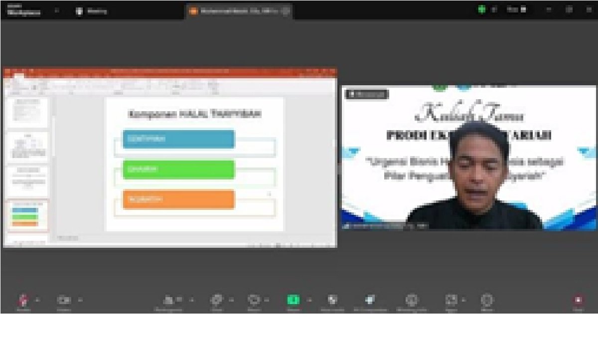 Kegiatan ditutup dengan penyampaian apresiasi kepada pemateri serta harapan agar mahasiswa dapat mengimplementasikan wawasan yang diperoleh dalam pengembangan akademik maupun praktik kewirausahaan halal.