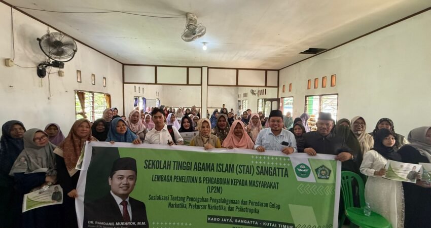 Sangatta, 23 November 2025 — Lembaga Penelitian dan Pengabdian kepada Masyarakat (LP2M) Sekolah Tinggi Agama Islam (STAI) Sangatta melaksanakan kegiatan Sosialisasi Pencegahan Penyalahgunaan dan Peredaran Gelap Narkotika, Prekursor Narkotika, dan Psikotropika di Aula TPA Masjid Nurul Iman, Kabo Jaya, Sangatta, Kutai Timur.