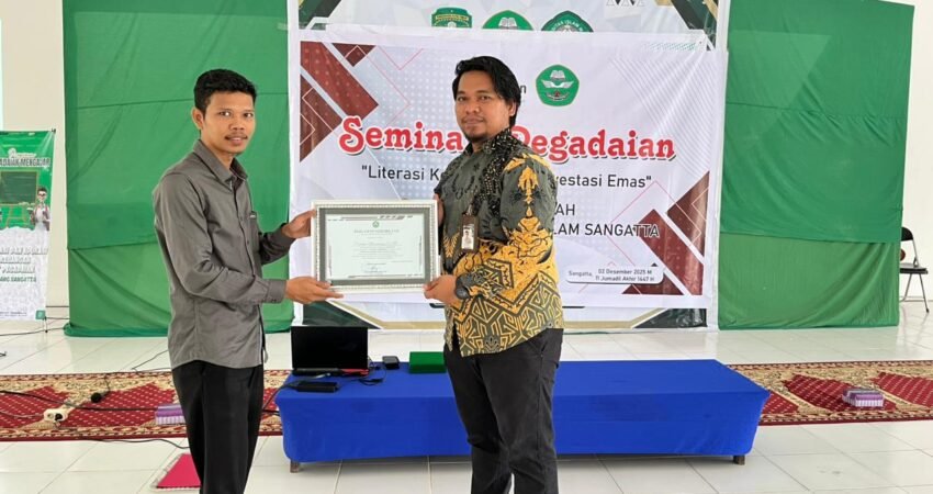 Sangatta – Program Studi Ekonomi Syariah dan Ahwal Syakhsiyyah (Hukum Keluarga) Jurusan Syariah STAI Sangatta bekerja sama dengan Pegadaian Syariah menggelar Seminar Literasi Keuangan bertema “Literasi Keuangan dan Investasi Emas”, Selanjutnya